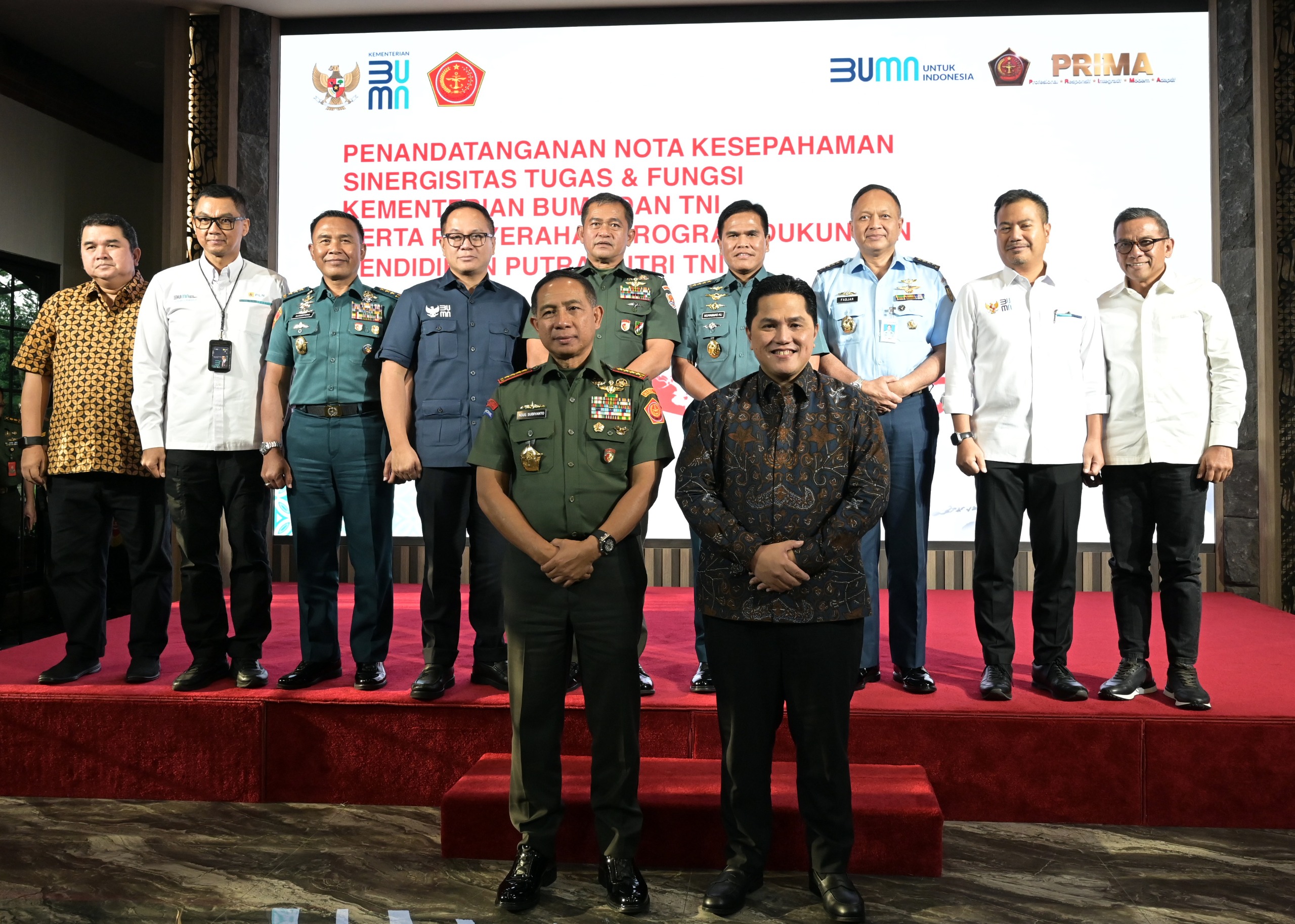 Penandatanganan nota kesepahaman sinergitas tersebut dilakukan oleh Menteri BUMN Erick Thohir dan Panglima TNI Jenderal Agus Subiyanto di Rumah Dinas Panglima TNI, Jakarta pada Senin (25/03).