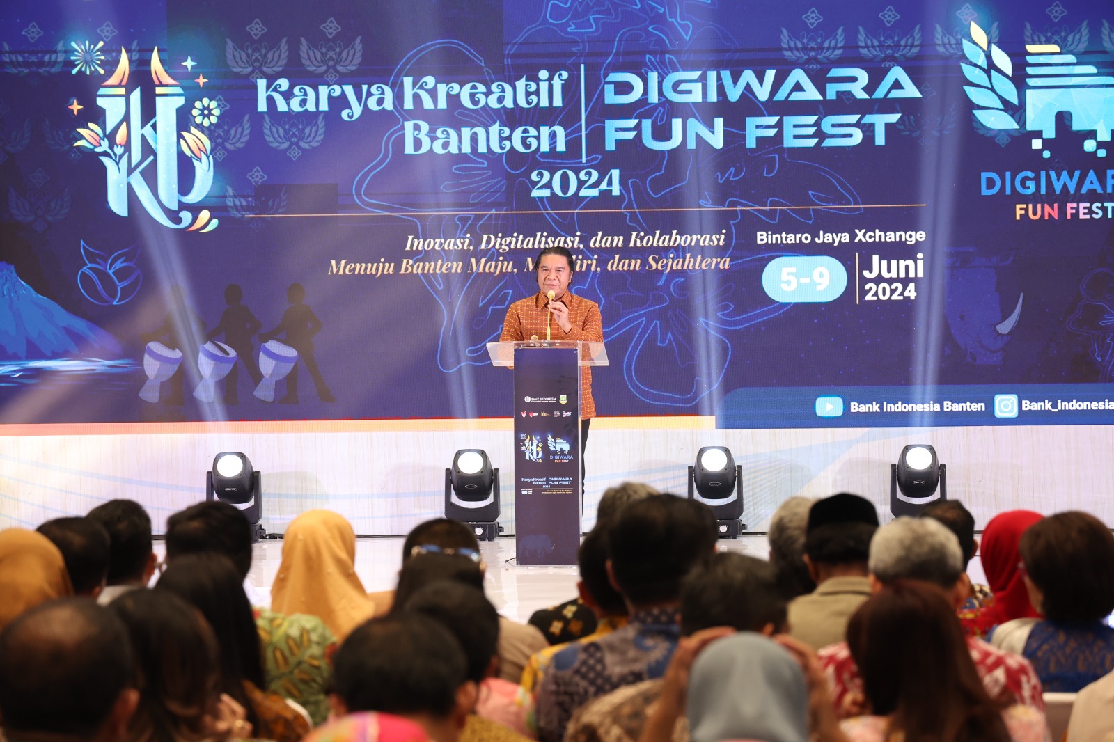 Karya Kreatif Banten dan Digiwara Fun Fest 2024 digelar oleh Perwakilan Bank Indonesia (BI) Provinsi Banten dengan Pemerintah Provinsi (Pemprov) Banten yang mengusung tema ‘Inovasi, Digitalisasi dan Kolaborasi Menuju Banten Maju, Mandiri dan Sejahtera’.