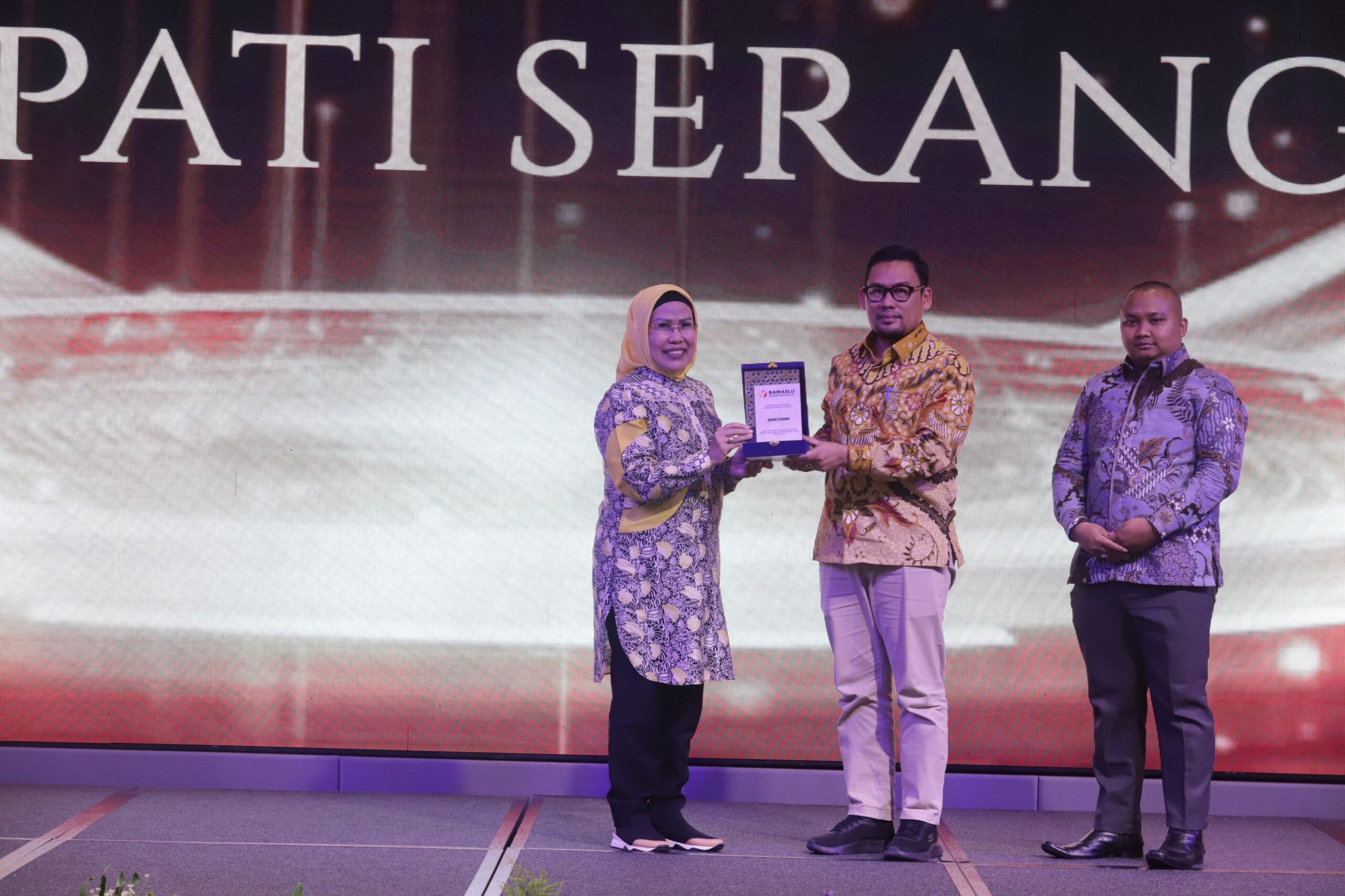 SERANG, – Bupati Serang Ratu Tatu Chasanah meraih penghargaan Badan Pengawas Pemilu atau Bawaslu Kabupaten Serang Awards Tahun 2024. Penghargaan sebagai bentuk apresiasi yang telah mensupport menyukseskan Pemilihan Umum (Pemilu) 2024 lalu.
