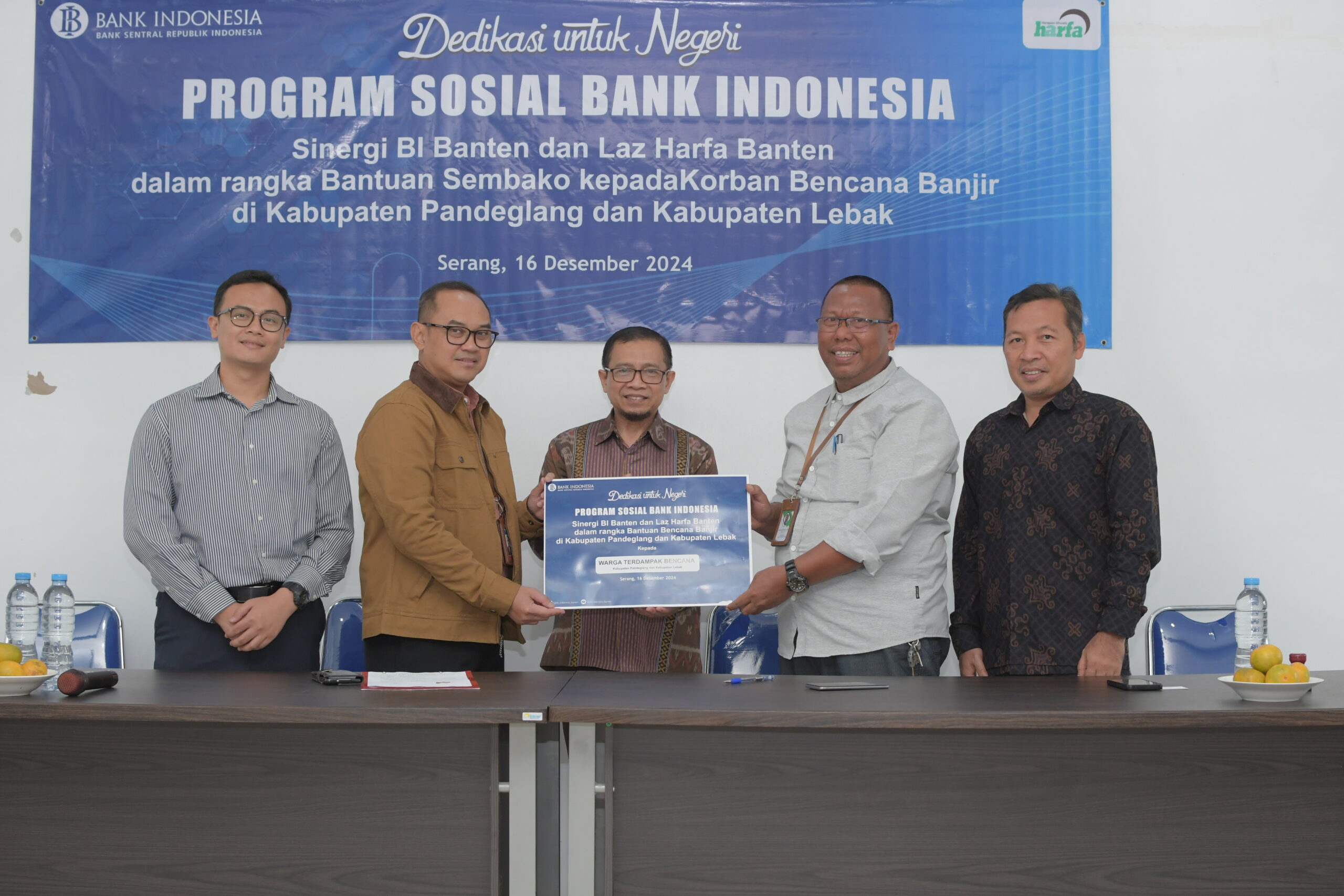 Bantuan ini disalurkan melalui sinergi bersama Lembaga Amil Zakat Harapan Dhuafa (LAZ Harfa) Banten. Penyerahan bantuan dipimpin langsung oleh Kepala Tim KPw BI Banten, Agus Sumirat pada Senin, 16 Desember 2024.