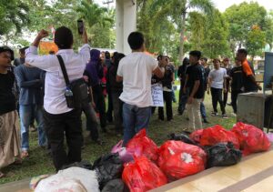 Truk-truk tersebut kemudian dipaksa balik arah serta isi muatannya ditumpahkan di halaman kantor Dinas Lingkungan Hidup atau DLH Pandeglang sebagai simbol bahwa penderitaan warga harus ikut dirasakan para pejabat.