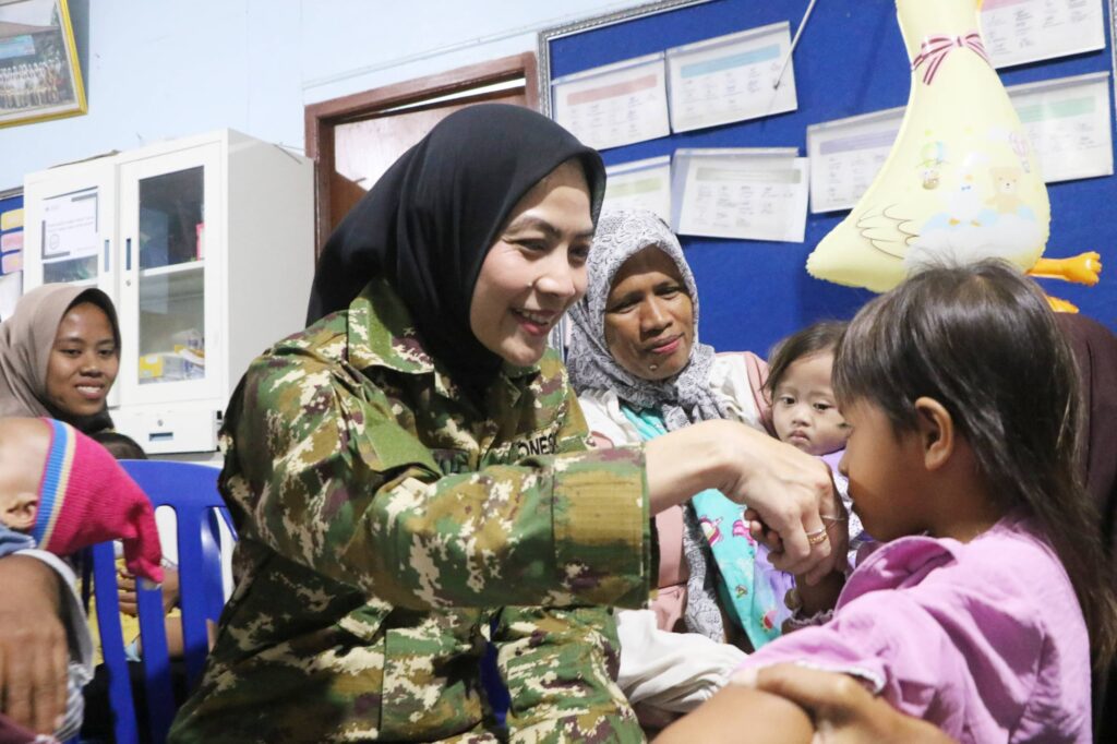 Dalam sidak ini, Bupati Ratu Zakiyah masih mengenakan baju TNI dan langsung berdialog dengan masyarakat yang tengah berobat di puskesmas ini.