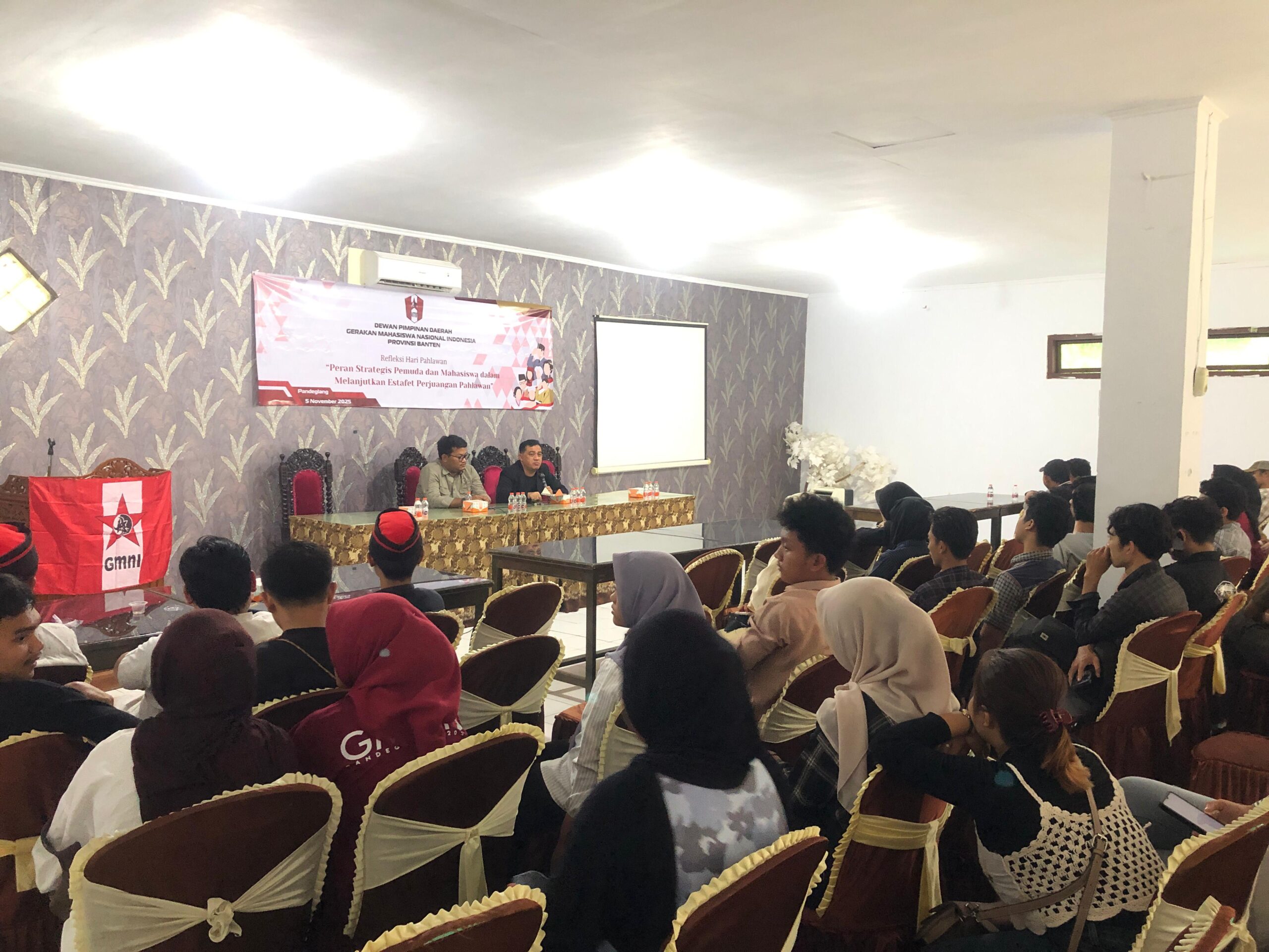 PANDEGLANG, – Dalam rangka memperingati Hari Pahlawan 10 November, Dewan Pimpinan Daerah (DPD) Gerakan Mahasiswa Nasional Indonesia (GMNI) Provinsi Banten menggelar Diskusi Refleksi Hari Pahlawan dengan tema “Peran Strategis Pemuda dan Mahasiswa dalam Melanjutkan Estafet Perjuangan Pahlawan.”