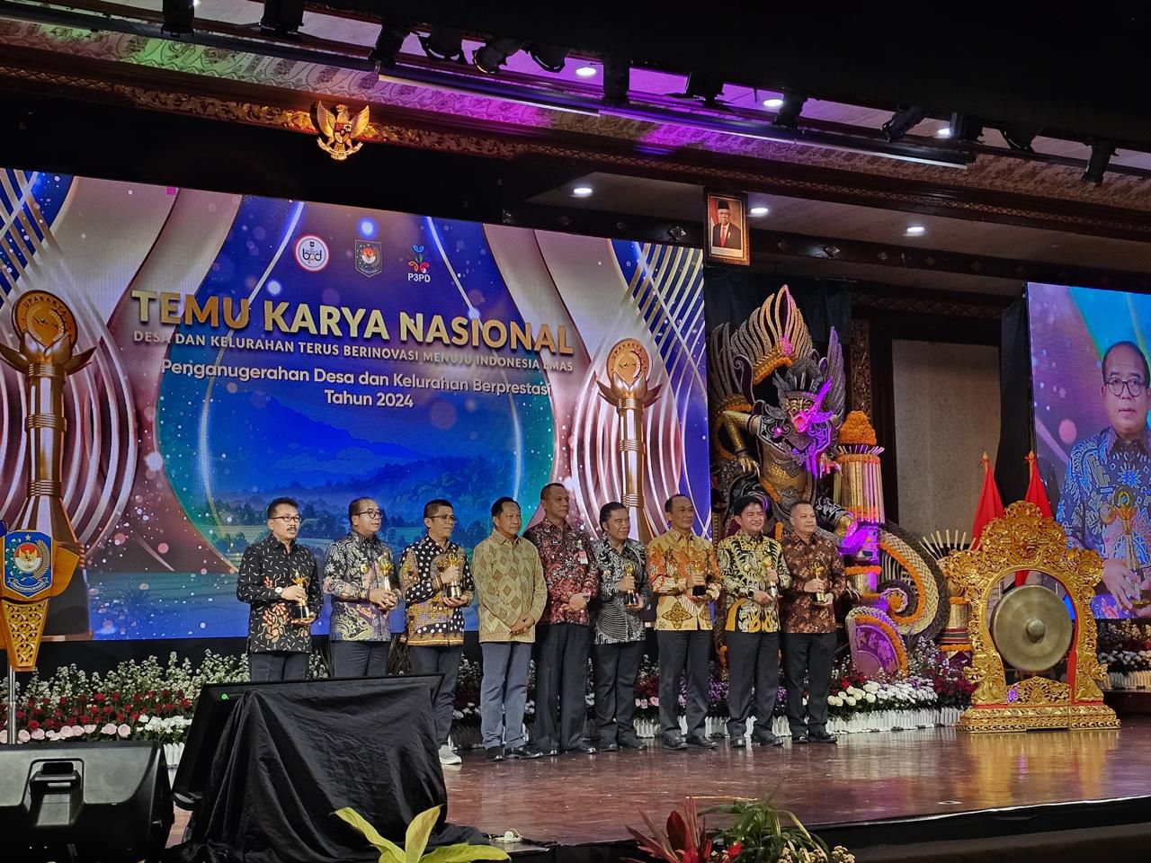 Anugerah itu diberikan dalam Temu Karya Nasional 2024 yang mengusung tema ‘Desa dan Kelurahan Terus Berinovasi Menuju Indonesia Emas’ di Gedung Ksirarnawa Komplek Art Center Bali, Kota Denpasar, Bali, Selasa (8/10/2024).
